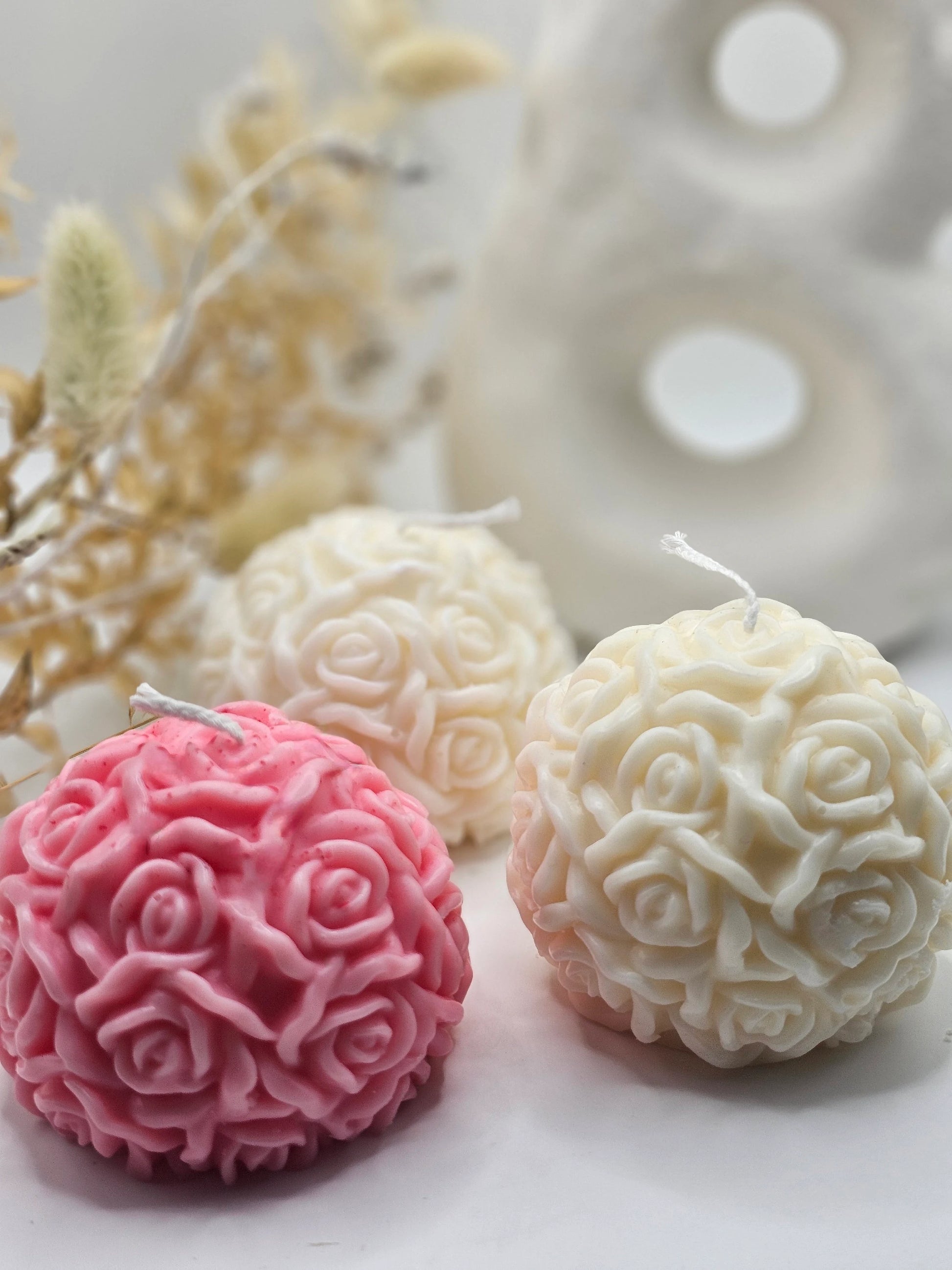 Die runde Kerze mit Rosenmotiv ist ein wahres Schmuckstück für dein Zuhause. Sie hat eine sanfte, runde Form und ist liebevoll mit filigranen Rosenmotiven verziert, die einen Hauch von Romantik und Eleganz versprühen.